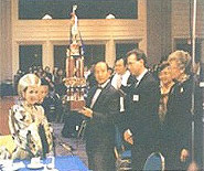 The representatives of the Governors of the six states each gave a speech, extending their gratitude and the highest respect to the Supreme Master Ching Hai. They also read a proclamation that designated the 22nd of February as "The Supreme Master Ching Hai Day". Then, together with Mr. Chen, they presented the Supreme Master Ching Hai with the "World Spiritual Leadership Award" cup, and 5 bronze busts of Herself, to receive Her blessing. Lastly, on behalf of the Republican party of the U.S.A., Mr. Hung Kwang Chen presented 2 medals to the Supreme Master Ching Hai, one for Her relief efforts in the flood disaster of the Midwest, U.S.A., and another for aid in the Mount Pinatubo volcanic eruption disaster in the Philippines. Afterwards, the Supreme Master Ching Hai gave an acceptance speech. She said that Her followers and Herself never expected any recognition or rewards for anything that they do for the people of various nations around the world. She felt that such warm-heartedness and courtesy that She was given for Her efforts in the relief of the flood victims was hard to refuse.