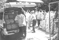 [Nantou] Late in the night following the Formosan earthquake, we delivered portable toilets to Chungliao rural township. Because of transport difficulty, it was long after midnight when we finally reached our destination. Nevertheless, the person in charge of the quake stricken town of Chungliao guided us to a number of locations where the toilets were to be placed. One young person ran up to us and asked with great sincerity, "May I know what group you are from? We will pay you a visit to express our thanks when we have time!" We simply answered, "Thanks to Master! It was Master Ching Hai who sent us here!" Early on the third day after the earthquake, we transported relief supplies to affected areas in Chungliao as fast as we could. On the way, a young man came to us seeking help for his small village where no relief workers had yet come. We gave all the supplies we had to this village that was in desperate need. When the villagers saw us, their helpless and dejected faces suddenly shone with the light of love and hope. As they thanked us, the young man repeatedly explained to them who our Master was and that it was due to Master's love that they had received this timely relief.