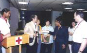 We took action right away, however, the route to the Pentagon in particular, and all routes to Washington, DC in general, had been blocked off, so we are unable to enter the disaster site to help. We then went to the Virginia Chapter of the American Red Cross, and donated US$ 10,000 to the organization, and next to the Virginia Hospital Center, where many victims had been brought in from the Pentagon for medical diagnosis. The fire at the Pentagon injured many people, but only a few had lost their lives. Many non-profit and voluntary organizations had been organized under a command center to carry out various tasks. We contributed US$ 2,000 to Crisis Link, a non-profit organization handling a suicide hotline and now taking care of telephone calls from people looking for their relatives among the victims, to help with their contact work. The next day, several fellow disciples from the Kentucky Center arrived after driving 12 hours from their area. They had received Master's message that everyone should immediately try to carry out relief work. We contacted various Red Cross offices and blood donation centers. But so many people had volunteered to donate blood that some had to wait up to six hours in certain places. Next, we received Master's guidance to contact the National Office of the American Red Cross and the National Salvation Army, and contributed US$ 51,000 to each in the name of the Supreme Master Ching Hai International Association. The officials and workers of these two organizations were very touched. They offered their gratitude to Master for Her quick action in helping to alleviate the victims' pain. They also received sample booklets and Master's News magazines, and asked us about recipes for vegetarian cooking. We then went back to the Virginia Hospital Center to find out more about the victims' condition. The local volunteer agencies were running at maximum efficiency; victims were being treated with the best care in one of the best facilities in the world. The Hospital Administrator asked us to leave our number so that she could contact us in the future. We then contacted the local Salvation Army to get information about supplying food to the professional and volunteer workers at the scene. We bought water, bread, cheese and men's work boots, dog food (dogs were used to sniff for people still stuck under buildings), kneepads and sunglasses to supply the workers and delivered them to the Salvation Army to pass on to the Pentagon relief staff. During