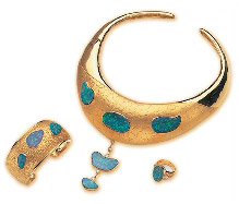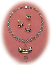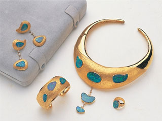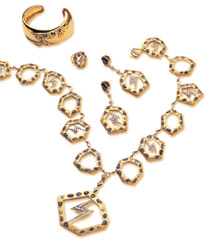 France • January 24, 1997 J1: Your jewelry seems to bring us toward another world. Is that world the real one? M: It's the realest one. Actually, every Master and every religious scripture has told us that this world is unreal. And the world that we aim toward inside, like what Jesus or Mohammed or Buddha pointed toward, that's the real world. It's the real world that we can find during our moments of silent contemplation, and the jewelry here is just a reminder of the beauty inside. J1: Why did You go so far as to give a meaning to each piece of jewelry? M: It's because I think that the greatest aim in this life is to find the Kingdom inside us, to find the wisdom or the Godhood inside us. So anything we can do toward the act of bringing us to this Kingdom is the perfect way. Be it jewelry, be it clothes, be it the way we live our lives, everything we do must bring us toward the remembrance of the Kingdom of God. That should be the goal of our life. J1: Does Your jewelry have an influence on the people who wear it or the people who are around it? M: I think people also influence themselves. If they've chosen this kind of jewelry, it means they already have this kind of tendency. They want to remember the Kingdom of God; they want to remind themselves and surround themselves with the Heavenly beauty. J1: How strongly do religion and the Buddha inspire Your work? M: It's not only the Buddha. I'm a disciple of all the great Masters: Jesus, Mohammed, Buddha, you name it. Because all the great Heavenly beings, divine Masters like Jesus, Buddha and so on, all teach us the same thing. They teach us to be a good guest on Earth, to live a good human life, and to remember the origin, which is the Kingdom of God or the Buddha's Land. These are named differently, but they're the same to me. J1: The word that sums up this collection: Is it "God?" Is it "wisdom?" Is it "Heaven?" What is it? M: We call it "Celestial Jewelry," "the Celestial Collection of Beauty." For example, we have a whole collection of clothing and interior decoration items such as lamps and paintings. Everything I do is inspired from Heaven. I don't think that I, as a mortal, am capable of creating such beautiful things. They're just inspired from Heaven so we call them "the Celestial Collection of Beauty." J1: Clothing, jewelry, poetry: You seem to be interested in everything. Do You have one thing that You prefer, or do You like everything? M: I actually like everything that I've done. Because it's not me who did it; it's the Father inside who inspired me and helped me to bring it into realization. Because I never studied these things before: I never studied painting or design or jewelry or clothing. I never had any idea about these things; it just came after many years of meditation practice, of going inside and finding wisdom. J1: What's the purpose of the jewelry that You create?