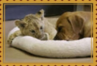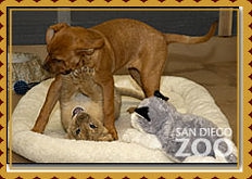 [San Diego, CA, USA] On February 1, 2006, CBS News reported that a puppy named Cairo, whose mother was rescued from Hurricane Katrina, had been selected by the world-famous San Diego Zoo to provide companionship for a young lion cub named Koza (meaning ‘Bright’ in Swahili). Little Koza had been left on his own since his mother lost another cub while giving birth and had to have a C-section performed to rescue him. Dispelling